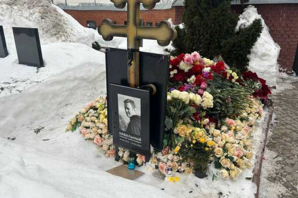 Жители Москвы приносят цветы к месту захоронения Навального во вторую годовщину его кончины