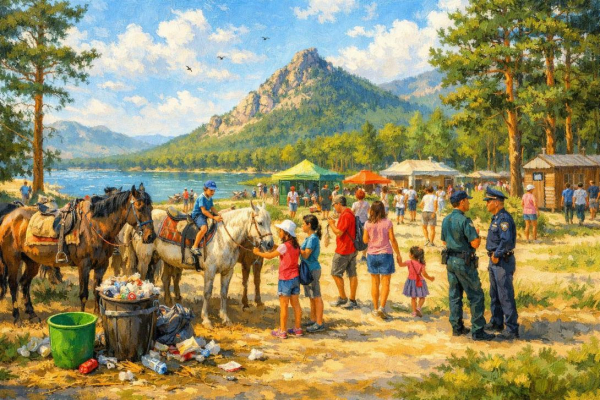 При этом нарушения связаны с предпринимателями, которые без разрешений предоставляют услуги катания на лошадях и не соблюдают санитарные нормы. Для пресечения незаконной деятельности акимат совместно с полицией и администрацией государственного национального природного парка (ГНПП) «Бурабай» и ТОО «Бурабай даму» проводит рейдовые мероприятия. В 2025 году было проведено 183 таких рейда.