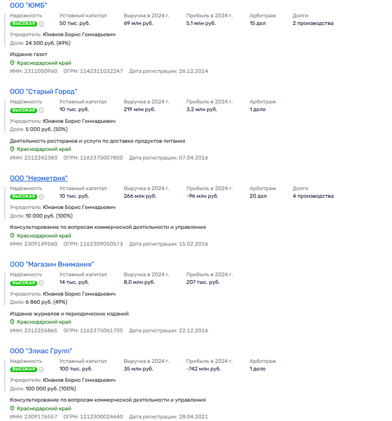 Сама по себе Авдышева занимается бизнесом с 2020 года, а по факту является прикрытием бывшего прокурора, а ныне - депутата ЗакСобрания Краснодарского края Бориса Юнанова, владеющего целой паутиной строительного бизнеса.