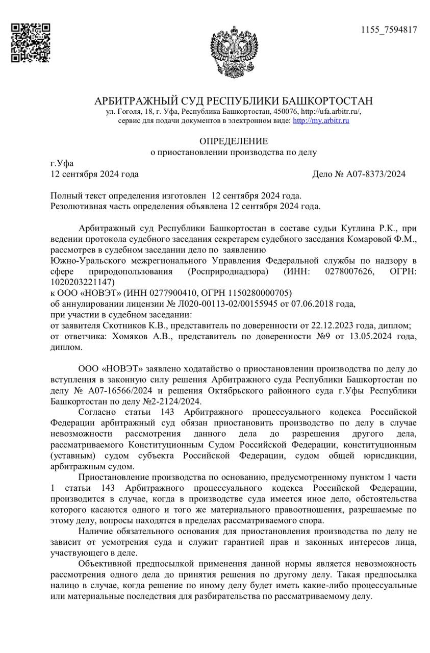 В сентябре того же года арбитражный суд Башкирии аннулировал лицензию и у ООО «НОВЭТ», но компания продолжила деятельность, прикрываясь апелляцией.