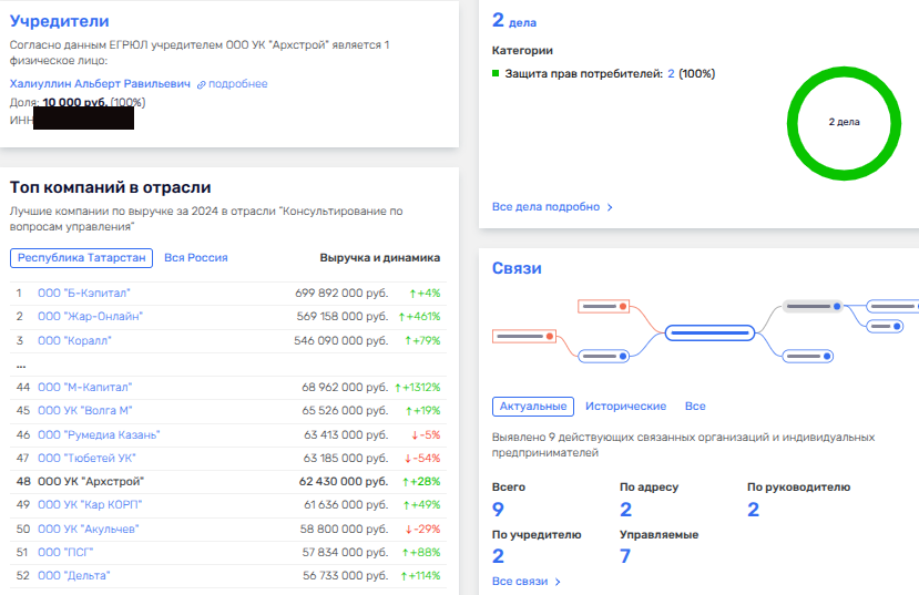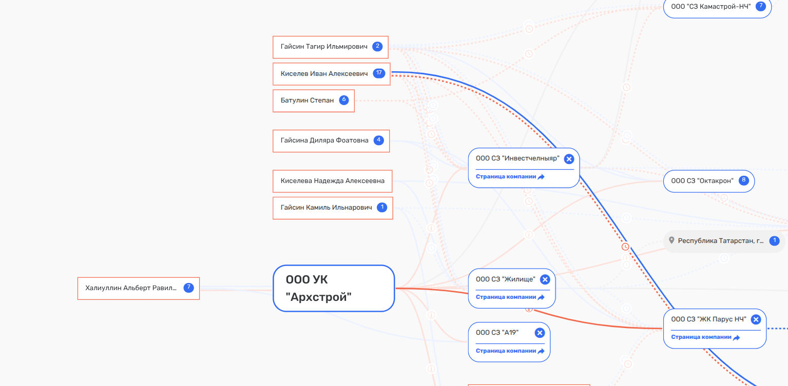 Если изучить бизнес-пирамиду Гайсиных, то там обнаружится как руководитель еще более примечательный персонаж - некое ООО УК «Архстрой» Альберта Халиуллина, бывшего директора фирмы по проведению азартных игр и пари ООО «Яшелурман».