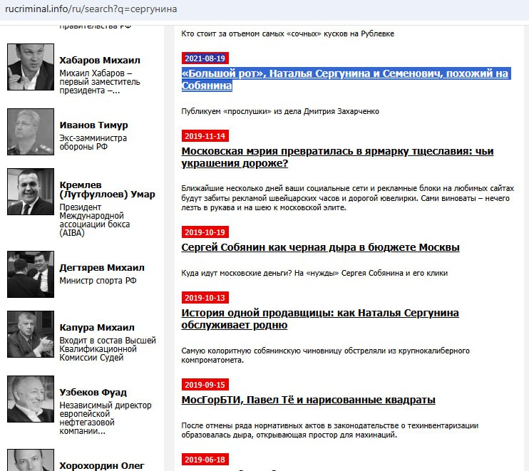 последняя негативная публикация о Сергуниной на РУКРИМИНАЛ датирована 19 августа 2021 года