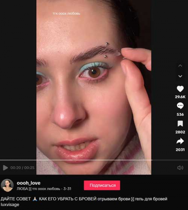 Яркий пример из последнего- скандал вокруг геля для укладки бровей LUXVISAGE. На его дискредитацию явно потратили серьёзный бюджет. Главная фигура — тиктокерша Мальвина. В своём видео она наносит средство, а затем показывает, как брови якобы «слиплись», «посыпались» и «выглядят ужасно» (https://vm.tiktok.com/ZMA7ru5Wa/).