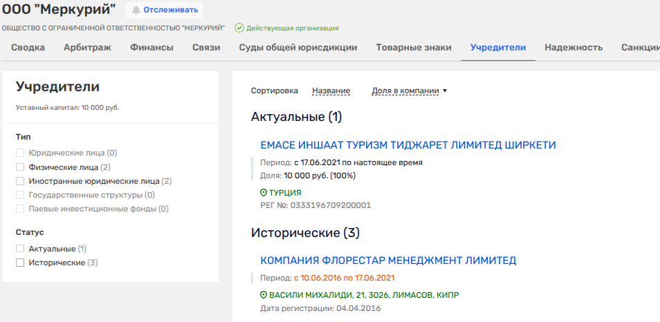 Более того, именно с семейством Сафаниевых связывают и сеть элитных отелей Custos, открытых в исторических особняках Москвы неким ООО «Меркурий». Последнее сначала было подконтрольно кипрской FLORESTAR MANAGEMENT LIMITED (все еще действующей), а сейчас бенефициаров скрыли за турецкой ЕМАСЕ ИНШААТ ТУРИЗМ ТИДЖАРЕТ ЛИМИТЕД ШИРКЕТИ.