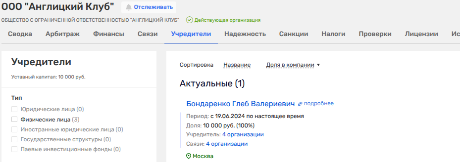 Так, буквально за пару недель до основной сделки также была продана малая часть имущества - общей площадью 414,5 кв.м. Покупателем стало малоизвестное ООО «Англицкий Клуб», которое принадлежит Глебу Бондаренко.