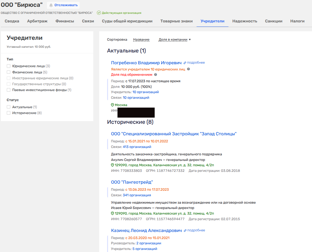 Компания «Орион» учреждена в 2023 году и принадлежит все тому же Погребенко, а вот «Романьон» припрятало своих бенефициаров за ЗПИФ.