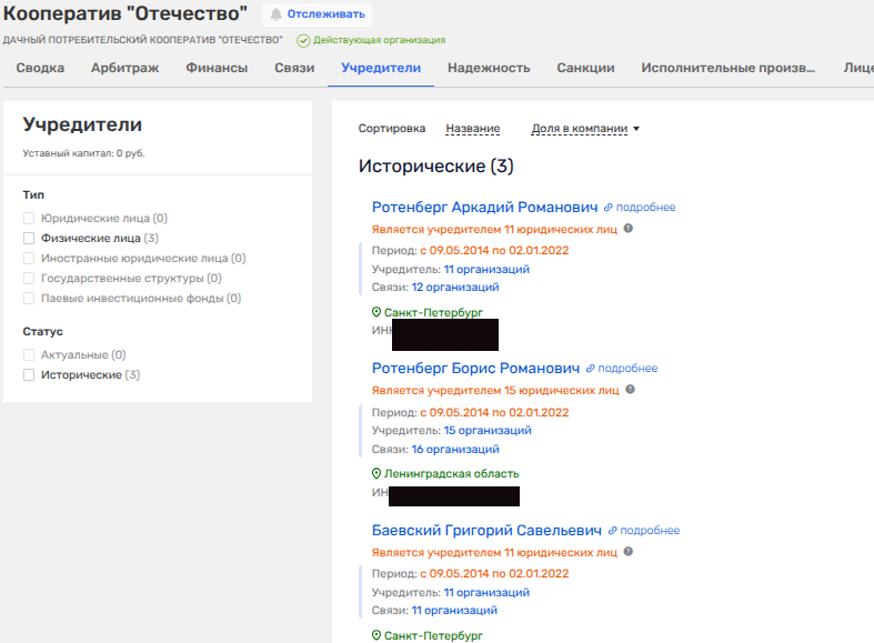 Помимо этого, Баевский - соучредитель кооператива «Отечество», где его партнерами были Аркадий и Борис Ротенберги.