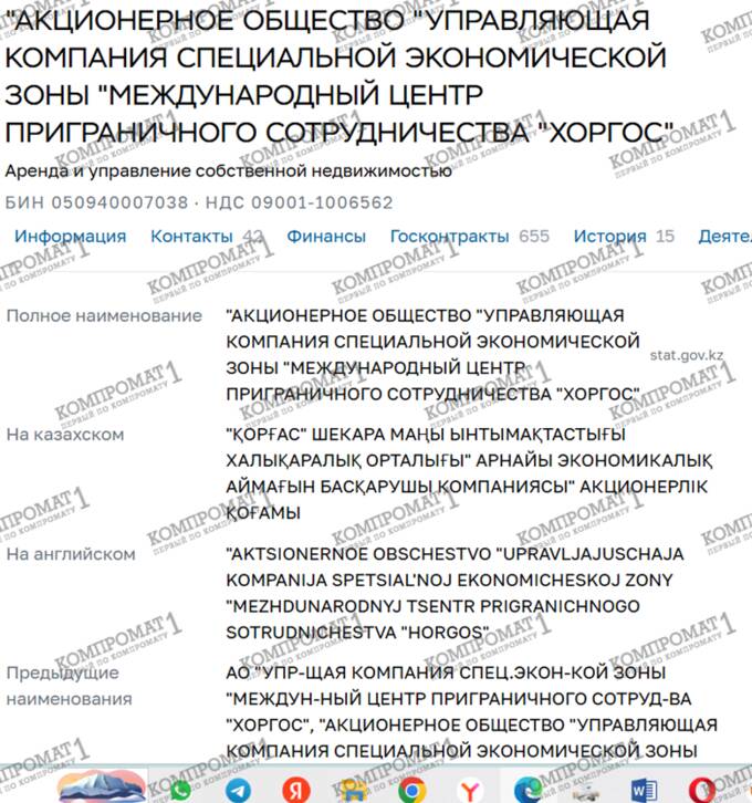 АКЦИОНЕРНОЕ ОБЩЕСТВО УПРАВЛЯЮЩАЯ КОМПАНИЯ СПЕЦИАЛЬНОЙ ЭКОНОМИЧЕСКОЙ ЗОНЫ МЕЖДУНАРОДНЫЙ ЦЕНТР ПРИГРАНИЧНОГО СОТРУДНИЧЕСТВА ХОРГОС, Область Жетысу, БИН 050940007038