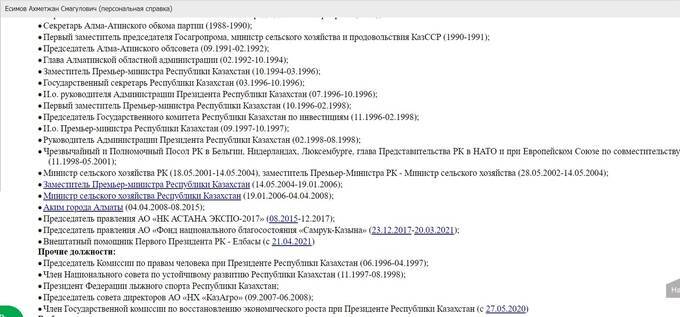 Compare some stages of his life path with the biography of his father-in-law, Akhmetzhan Yessimov. The coincidences, of course, are not direct, as in the case of the National Welfare Fund, but they cannot be ignored.