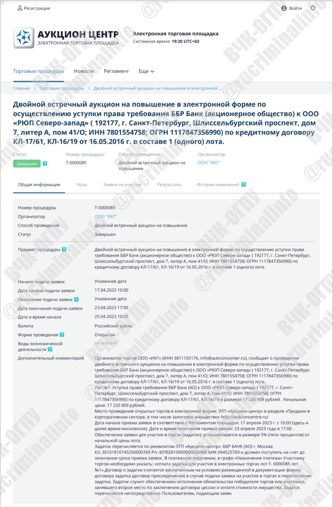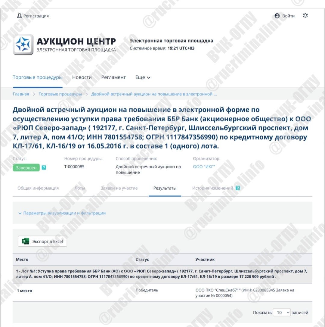 Редакция ВЧК-ОГПУ и Rucriminal.info располагает копиями протоколов торгов, извлечениями с сайта aukcioncentre.ru и подтверждениями участия ООО «ИстКонсалтингГрупп» в качестве организатора на собственной ЭТП. Все материалы могут быть переданы в распоряжение правоохранительных органов и профильных СМИ.