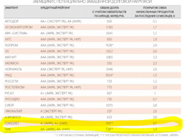 3. Долговой навес «Самолет» и ПИК: цифры, которые тревожат