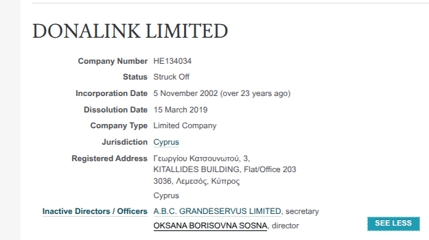 Особенно, если учесть, что мелькала в числе совладельцев вышеуказанной МК «Холвекс» и некая Оксана Сосна - директор кипрской DONALINK LIMITED.