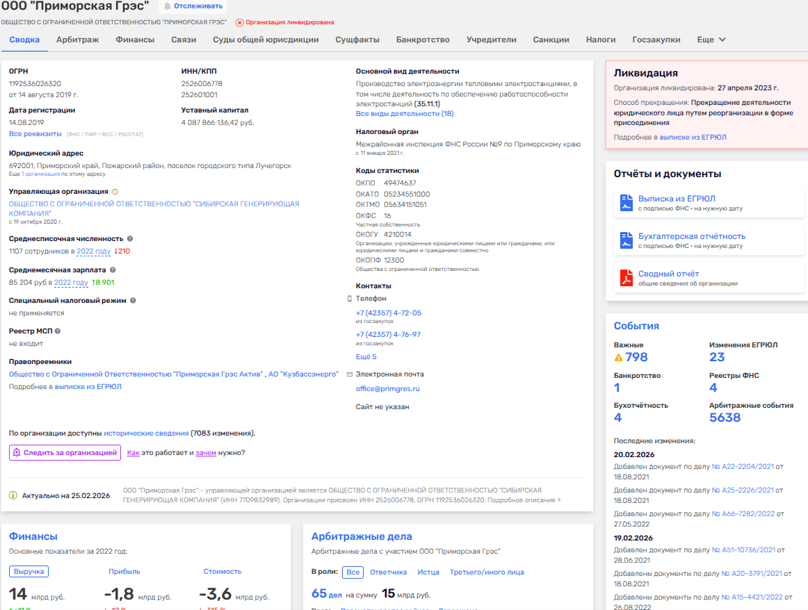 В апреле 2023 года ООО «Приморская Грэс» реорганизуют и ликвидируют как отдельное юрлицо, его правопреемниками становится АО «Кузбассэнерго».