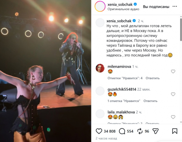 «Ну что, мой дельтаплан готов лететь дальше, и НЕ в Москву пока. А в хитропростроенную систему командировок. Потому что сейчас через Таиланд в Европу все равно удобнее, чем через Москву. Но надеюсь, это последний такой год», — написала Собчак в личном микроблоге день спустя.