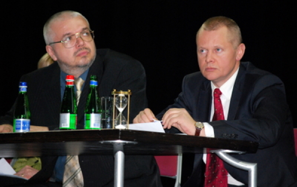 | Публицист Юрис Пайдерс и бывший сотрудник Бюро по защите Сатверсме (SAB) Арнолд Бабрис. |
