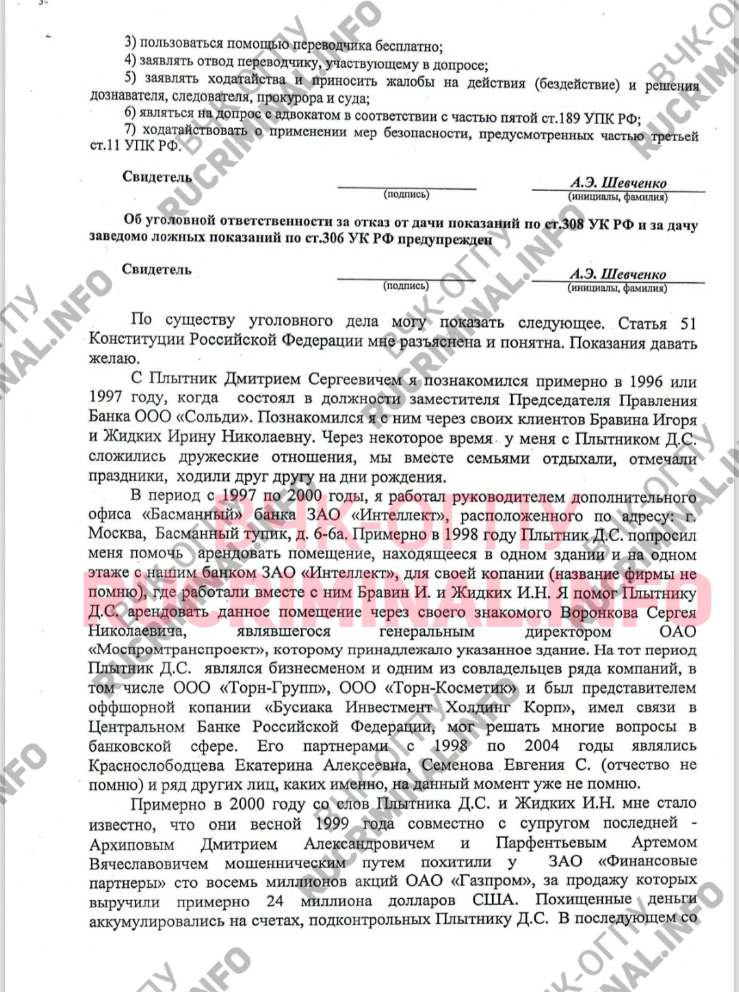 In the spring and early summer of 2005, at the Poplavok restaurant on Chistye Prudy, Shevchenko met with Radionova and Svirsky, who began to persuade him to withdraw money from National Capital Bank. After his refusal, Radionova and Co. began threatening to "remove" him, including through a criminal case in the Basmanny Prosecutor’s Office (then-prosecutor Alexei Zakharov (now, incidentally, Sergei Shoigu’s son-in-law) is a close friend of Radionova’s, and investigator Grigory Radionov is her brother). As a result, criminal case 3127 was opened against Shevchenko under Article 159, Part 4, and Article 163, Part 3, Subsection "b." In 2016, the case was dismissed due to lack of evidence.
